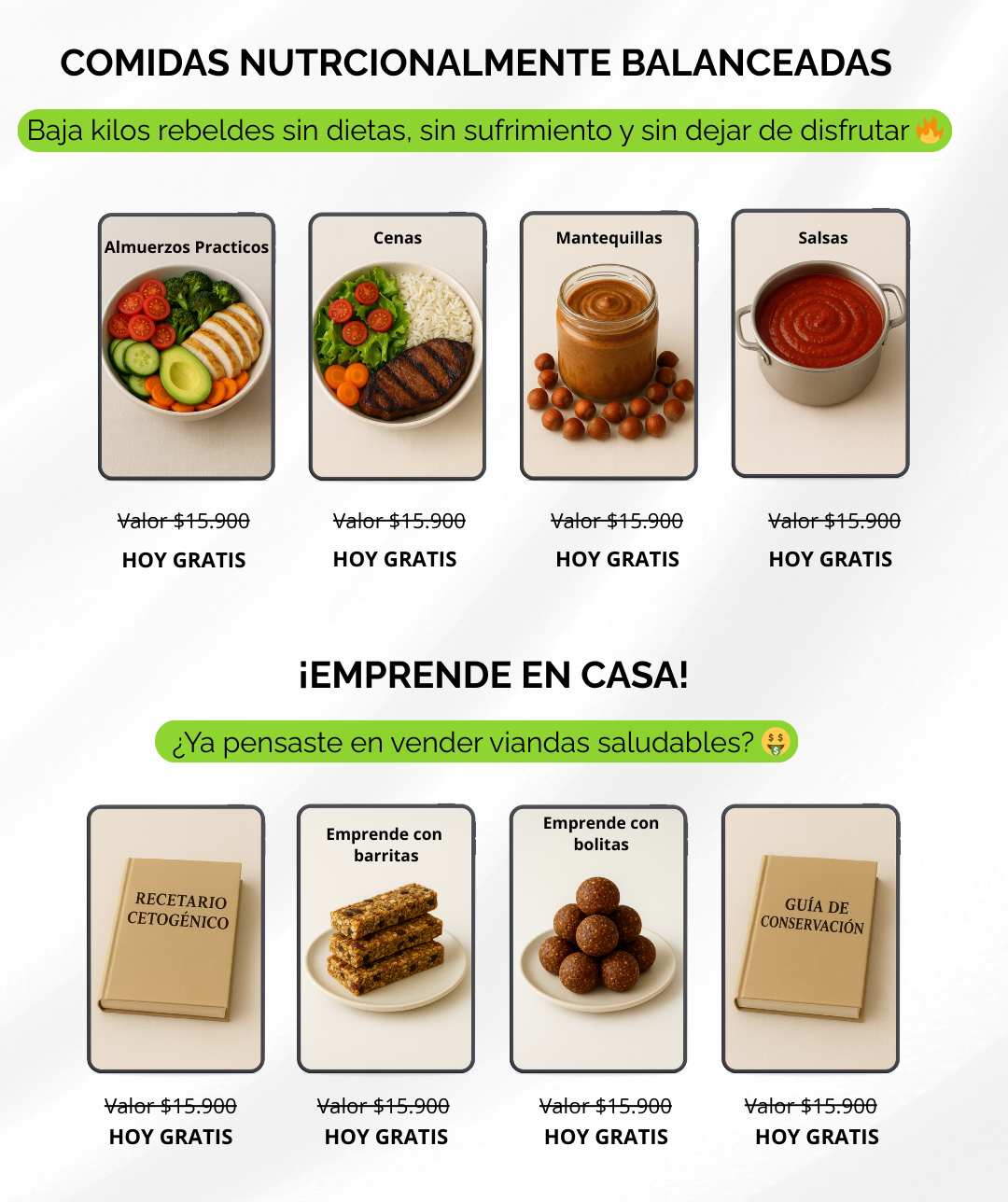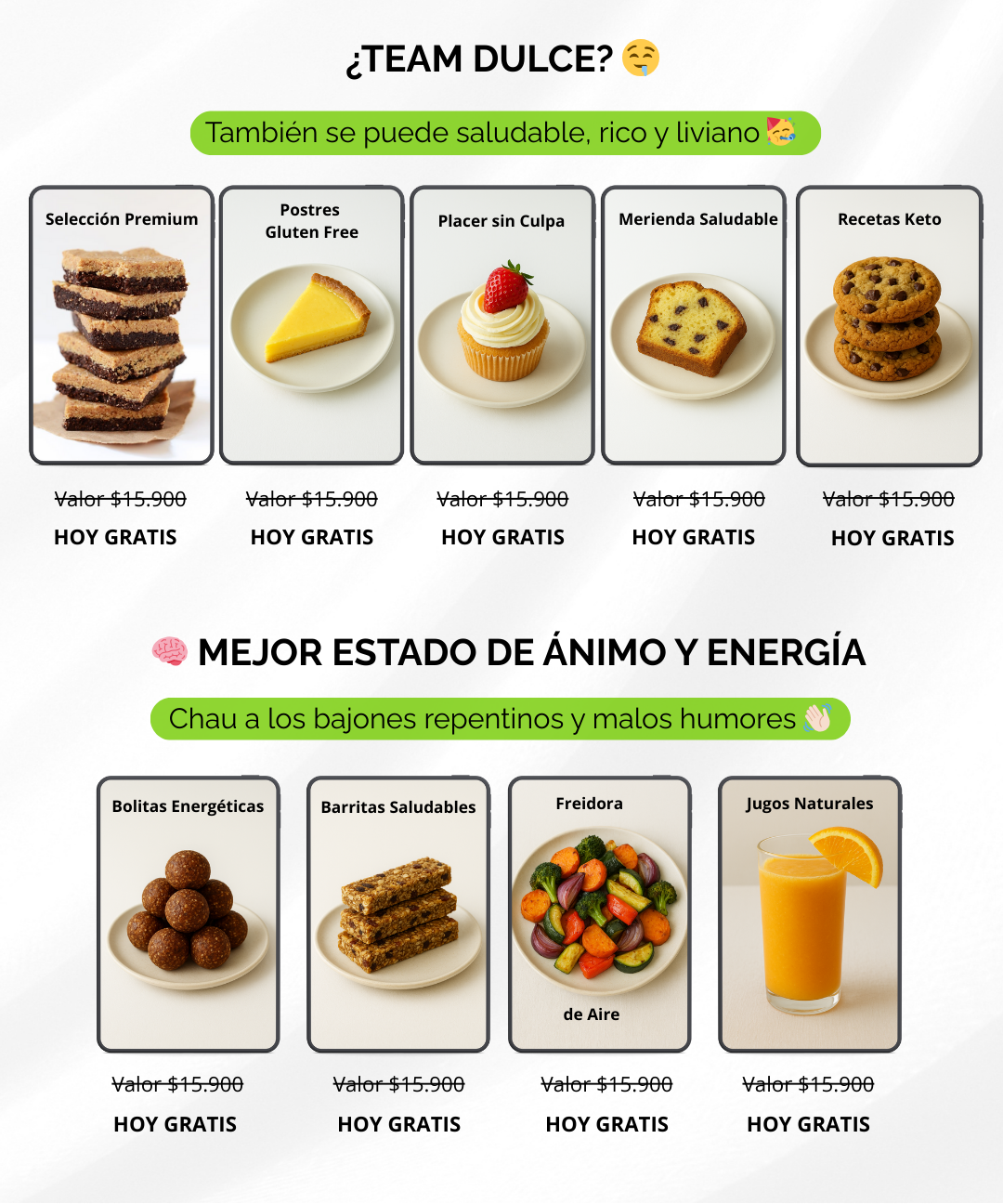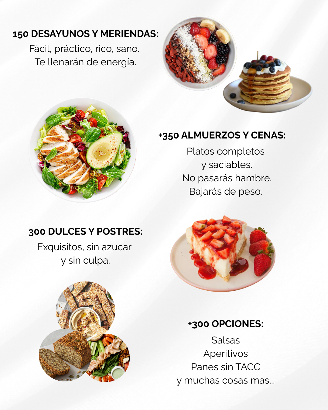 Todas las recetas usan ingredientes simples y naturales que encontrás en cualquier supermercado o almacén.