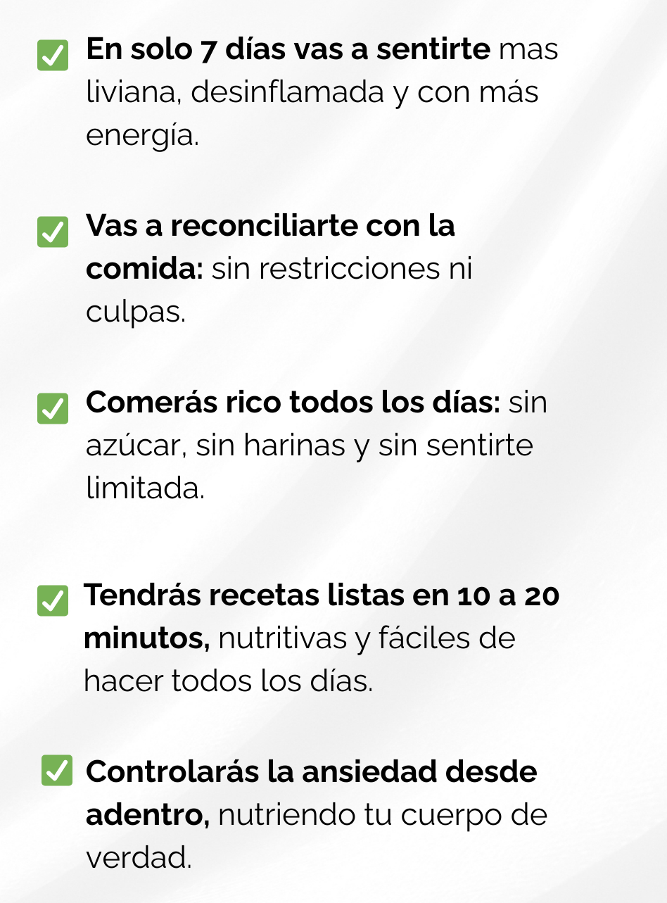 Si en esos 7 días no notás más energía, menos inflamación o simplemente no conectás con el contenido, escribinos.