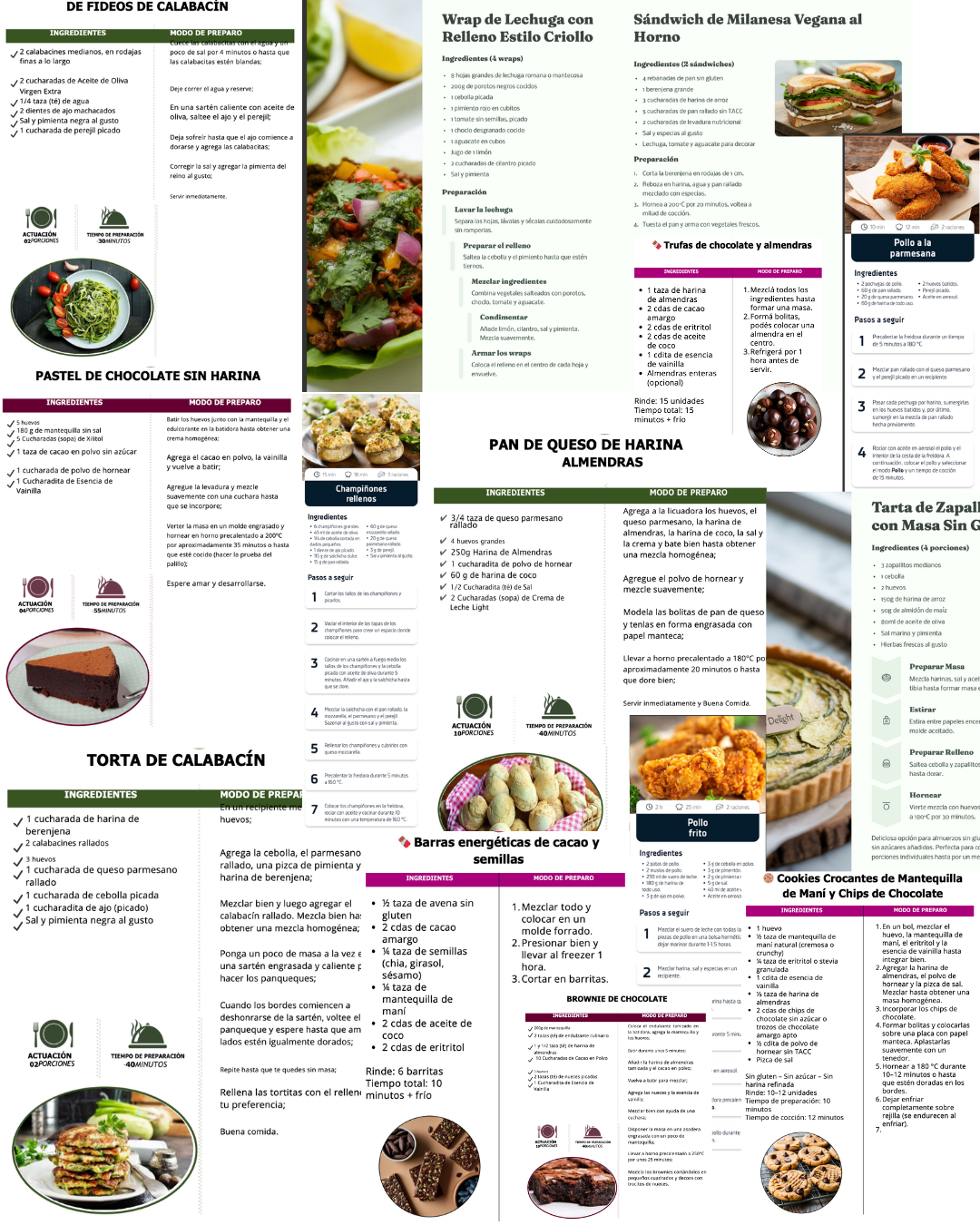 Cada receta está explicada paso a paso, con tiempos, porciones y reemplazos sugeridos.
